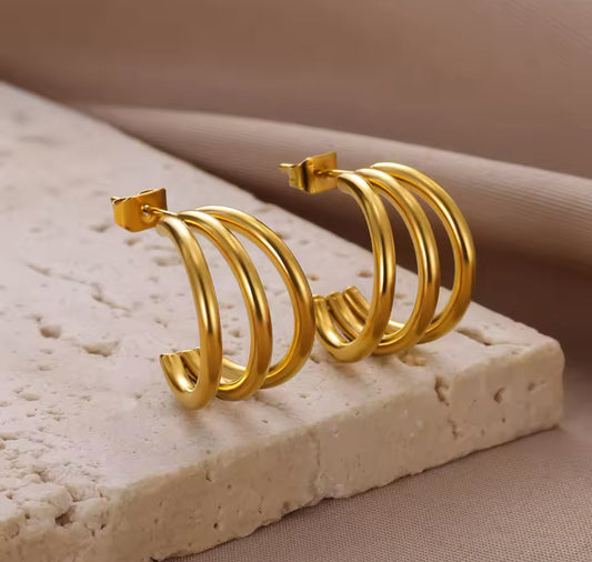 Triple Loop Gold Hoops